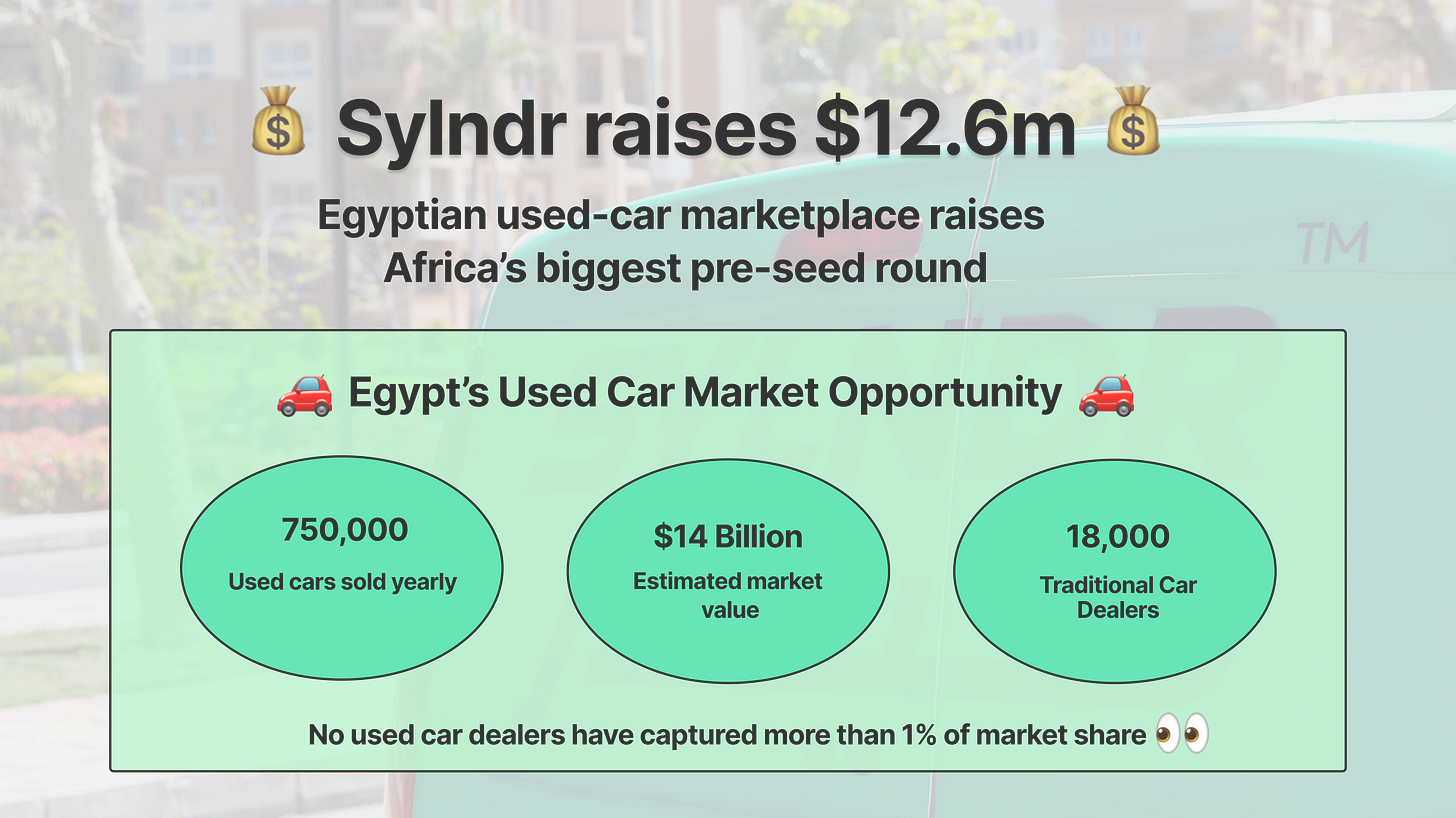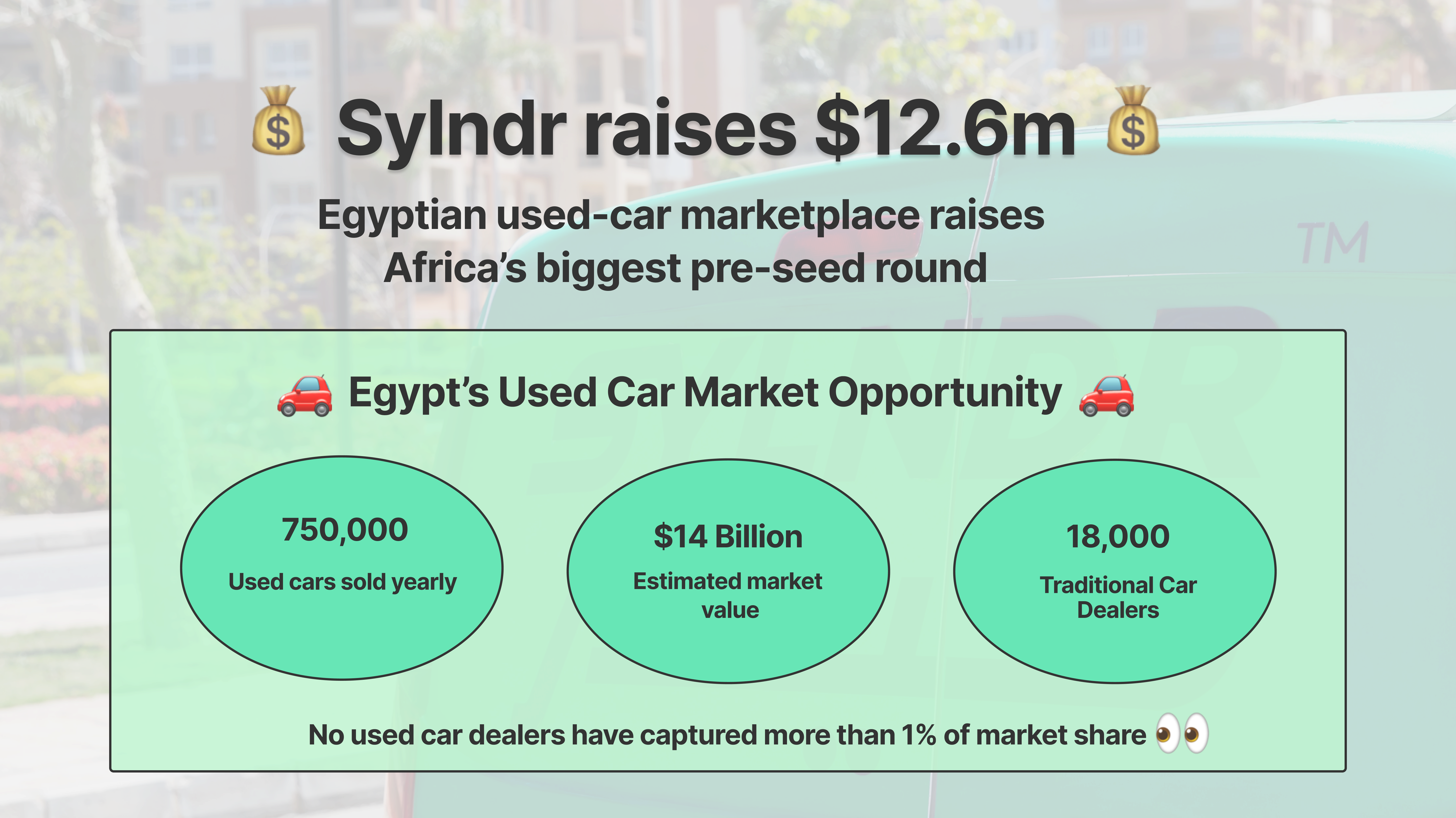 Sylndr - an Egyptian online used-car marketplace - raised a $12.6m pre-seed round, led by RAED Ventures. This is Africa’s biggest Pre-Seed round to date 💰